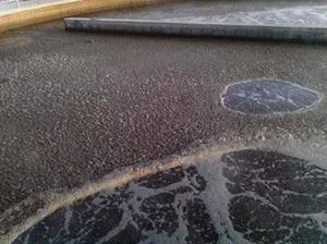 (4) 回流的二沉池污泥產生的泡沫介于表面活性劑和生物泡沫之間,感覺有點黏性。